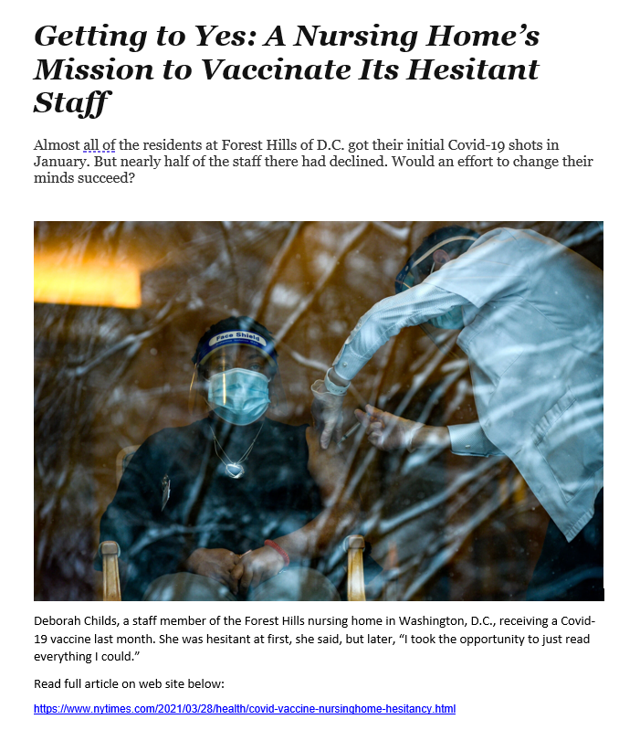 Getting to Yes: A Nursing Home’s Mission to Vaccinate Its Hesitant Staff